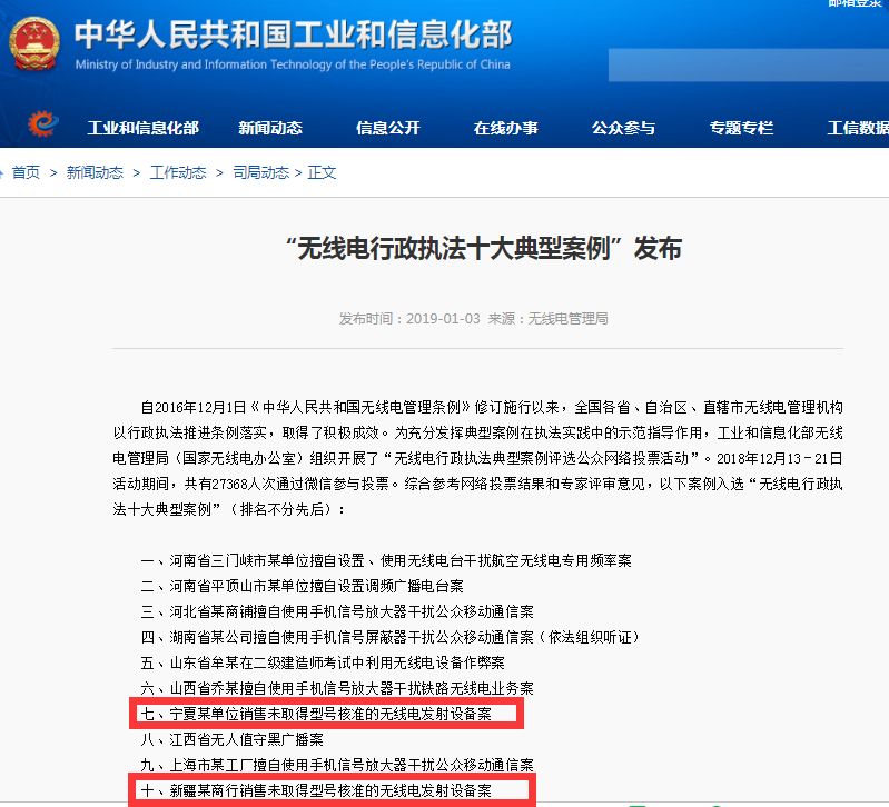 近日,工信部公布無線電執法典型案例,有兩個單位因銷售未取得型號核準(簡稱:SRRC認證)的無線電發射設備而“光榮”上榜。