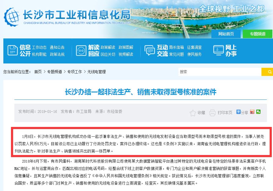更有企業因涉嫌非法生產、銷售和使用的無線電發射設備應當取得型號而未取得型號核準的案件,被處以罰款人民幣5萬元。